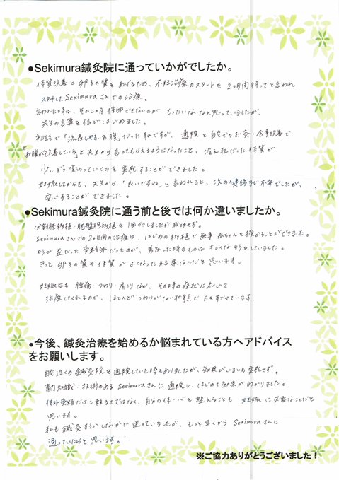 今回、紹介させていただくのは、実際に通ってくださった方の声です。(掲載許可済)