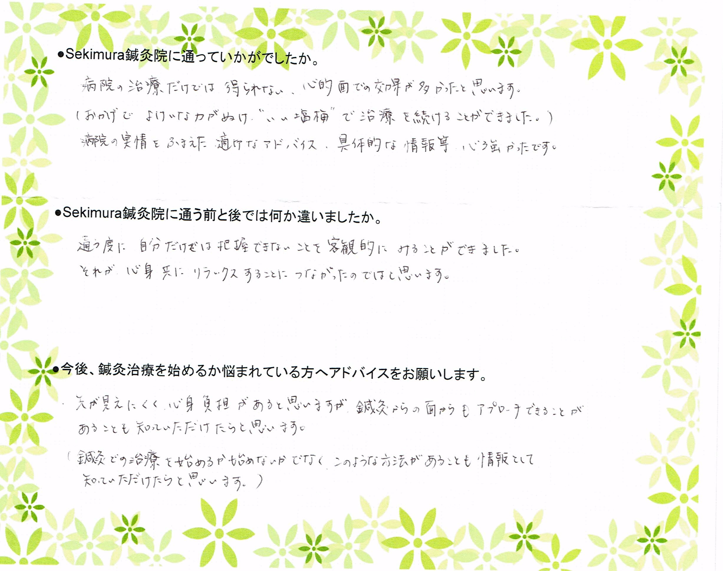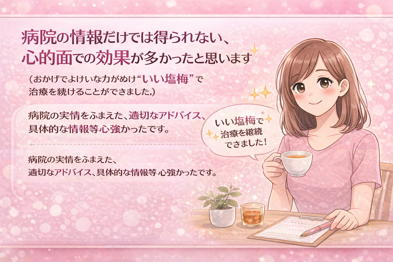 病院の情報だけでは得られない、心的面での効果が多かったと思います。