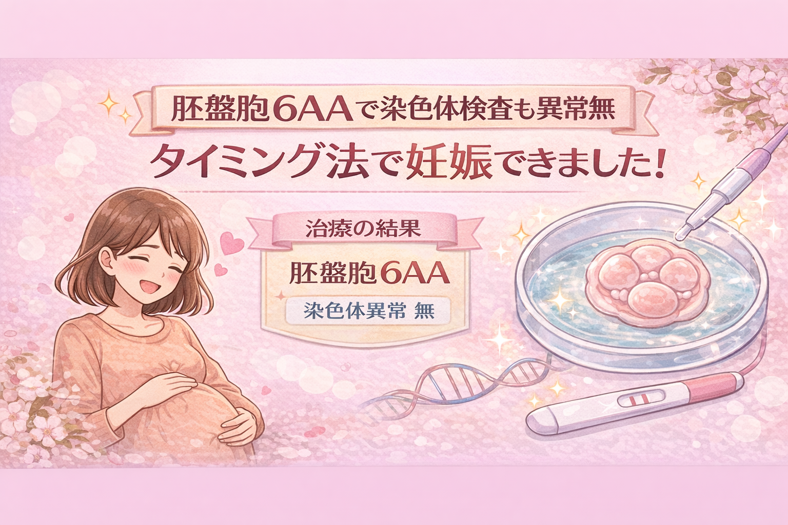 治療の結果、胚盤胞6aaで染色体検査も異常無のものが育ち、喜んでいた矢先にタイミング法で妊娠できました。――患者さんの声